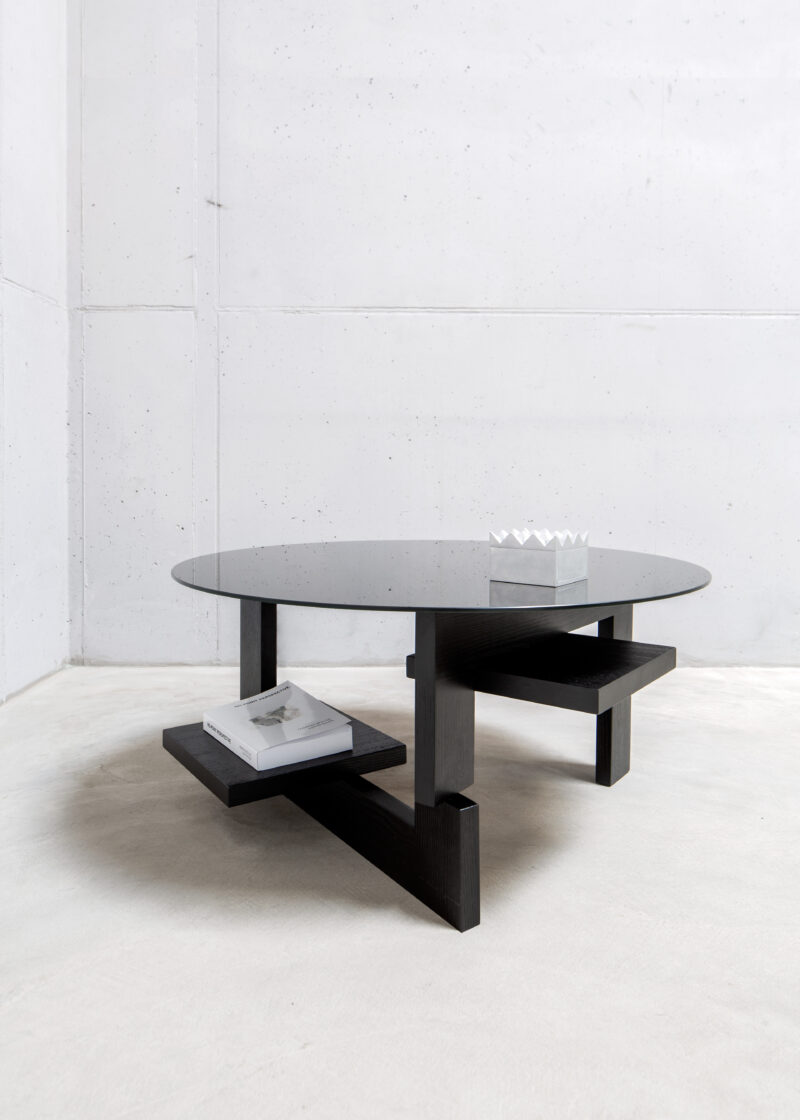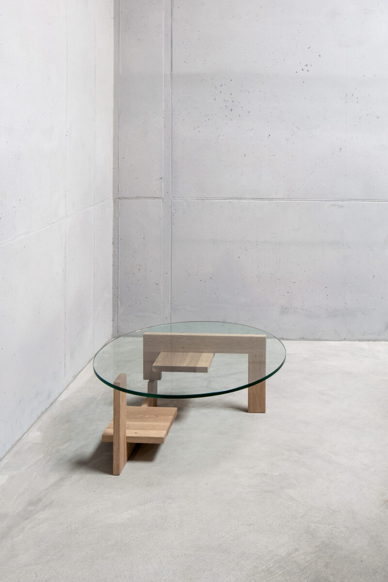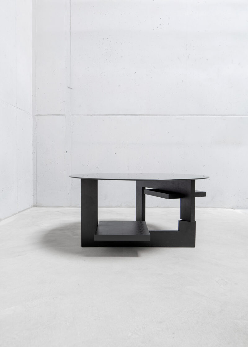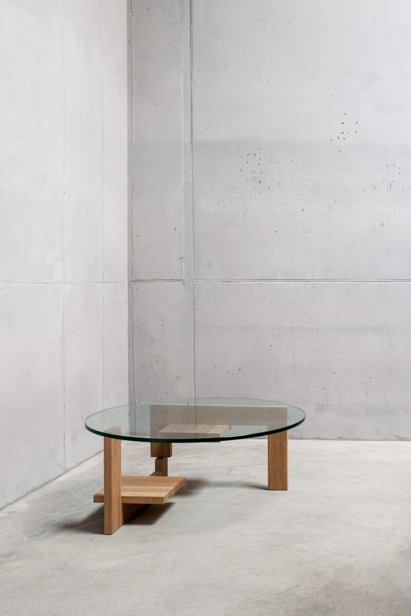 The IHCUGON Table is a backward version of the Noguchi table; essentially, it is the opposite. This table is not organic in form; the parts are not identical, and the IHCUGON Table has introduced two shelves that punctuate the void.