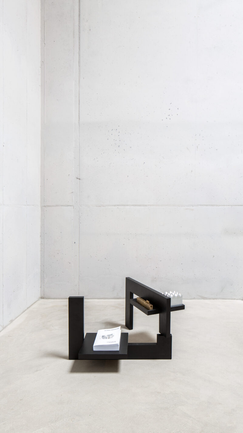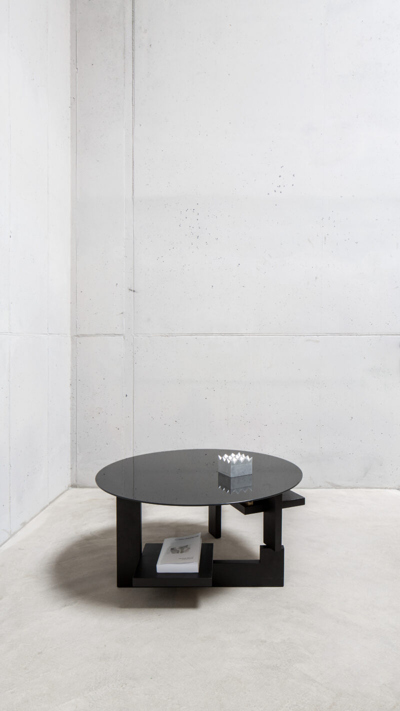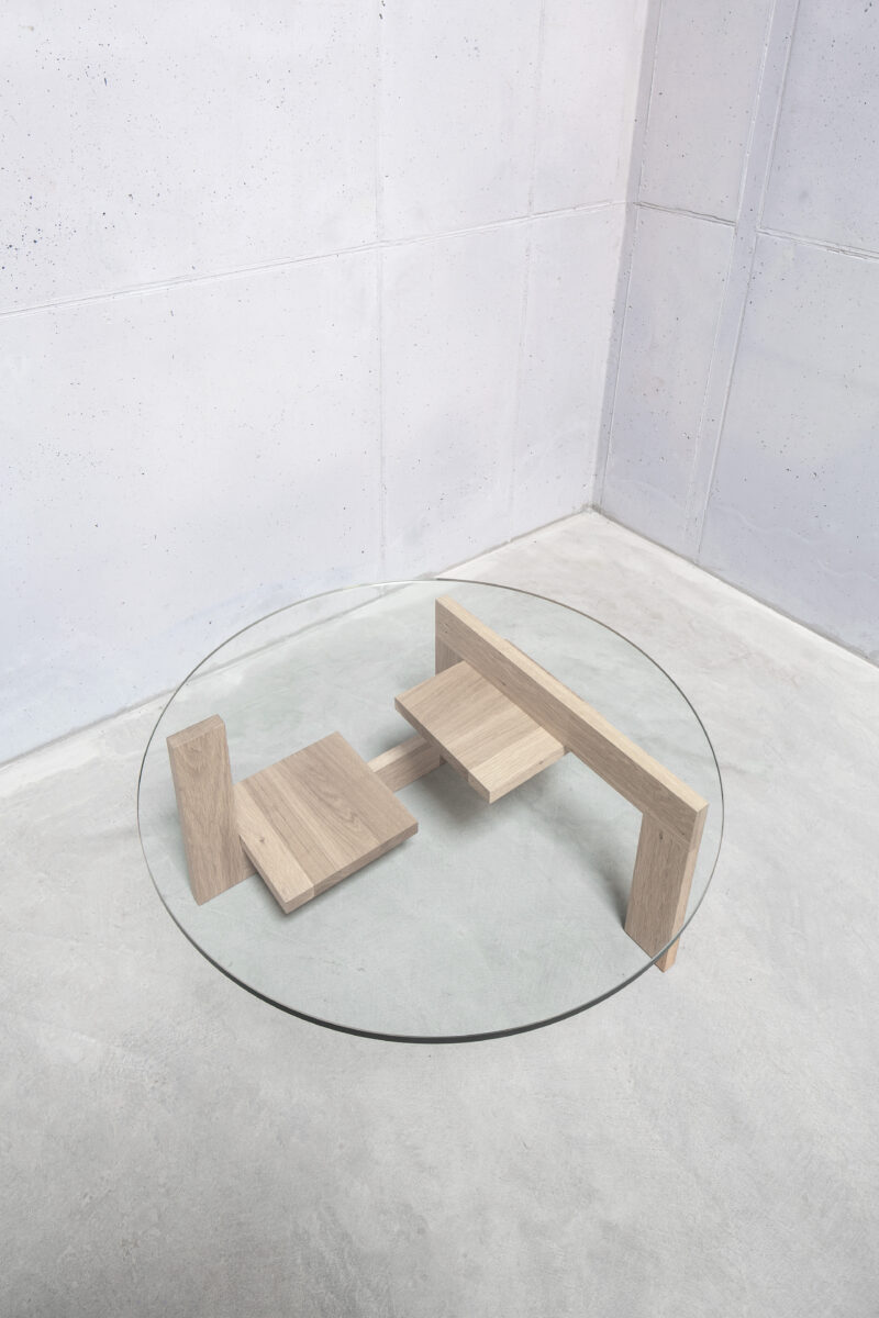 The IHCUGON Table is a backward version of the Noguchi table; essentially, it is the opposite. This table is not organic in form; the parts are not identical, and the IHCUGON Table has introduced two shelves that punctuate the void.