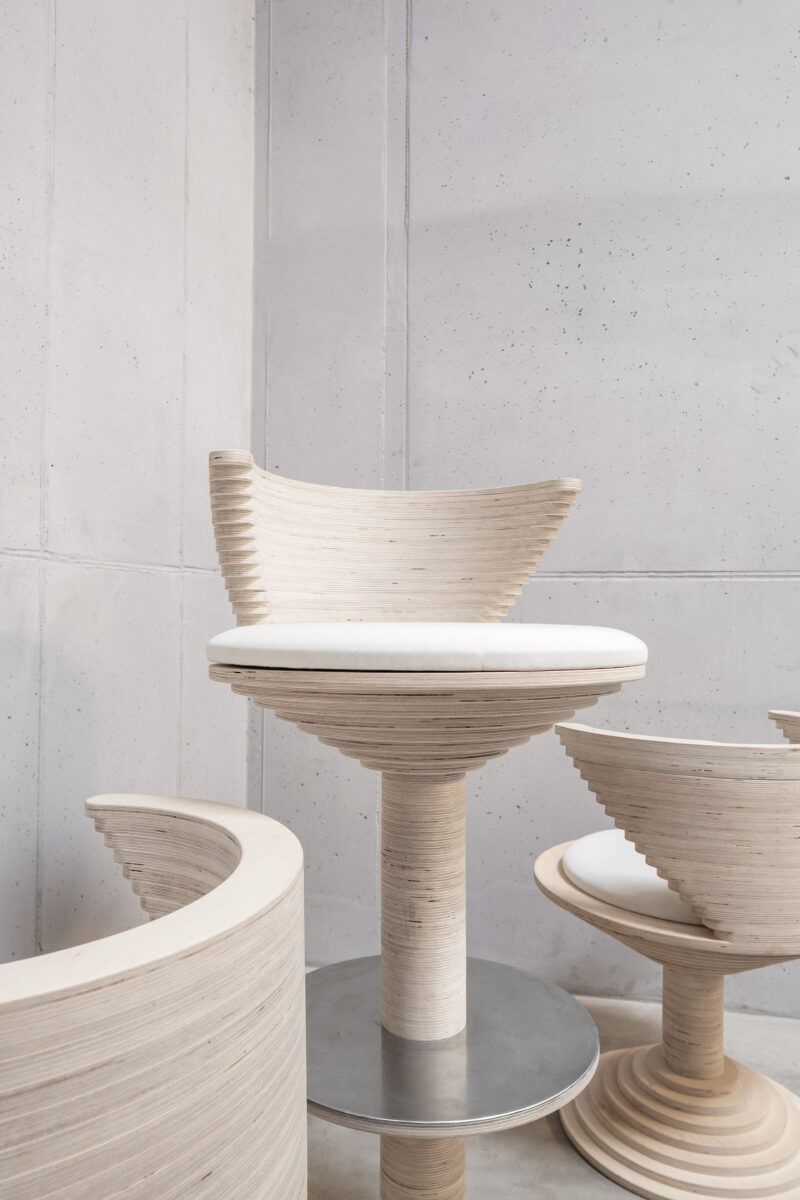 This seating concept emerged from an unrealized restaurant project. Stacked wooden plates – simple circular shapes – create unexpected three-dimensional forms. Their potential is yet undefined: functional seating, sculptural objects, perhaps elements for a future system. Like chess pieces awaiting their first move, they embody the transformative potential of pure form.