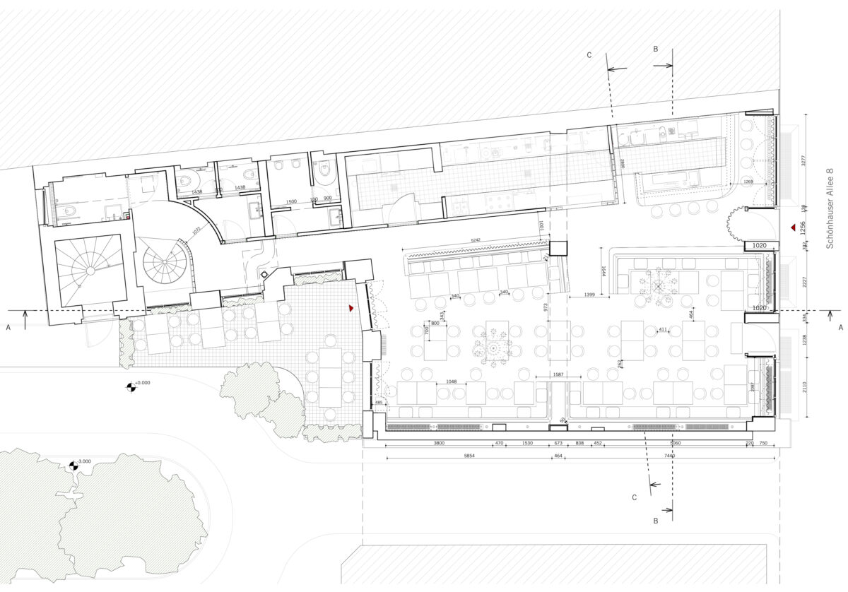 Fleischerei has been a fixture on Schönhauser Allee since 2009, occupying a former butcher shop. Renewal of a listed 1911 courtyard ensemble prompted an interior recalibration rather than replacement.