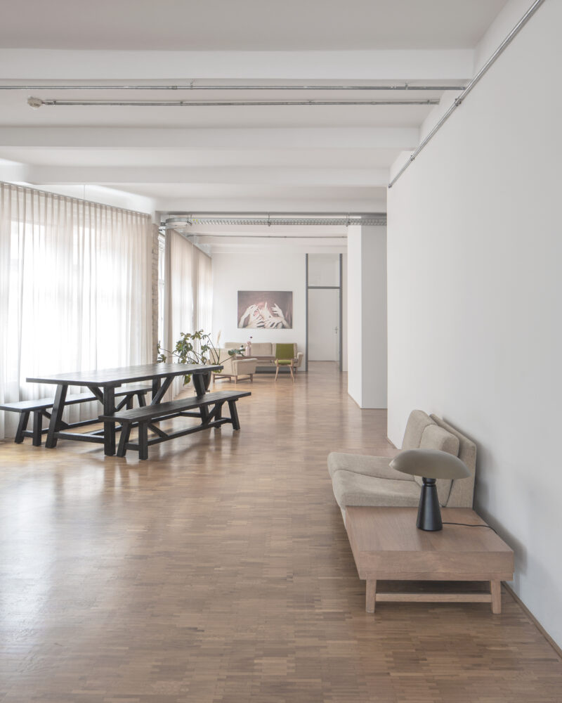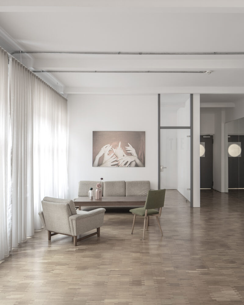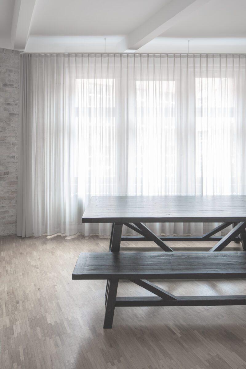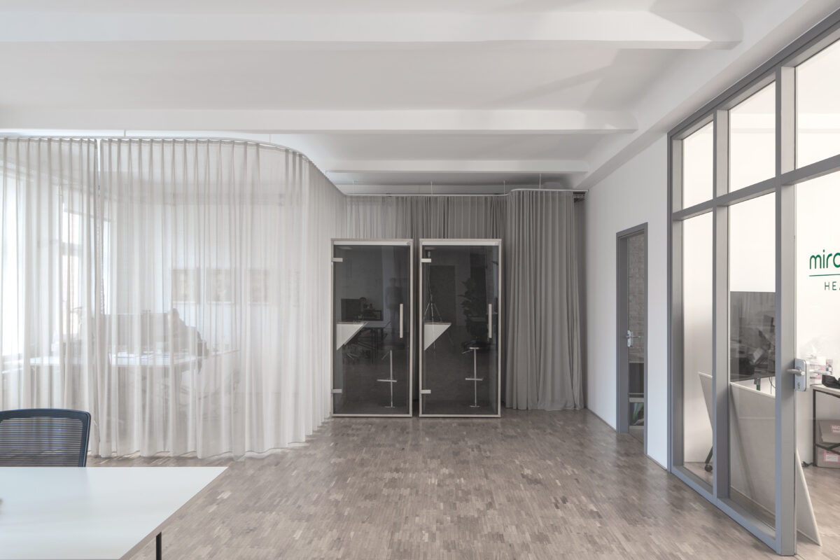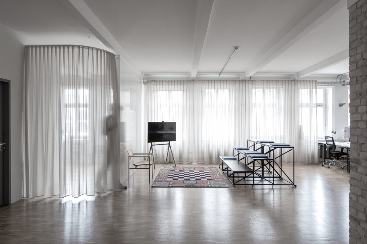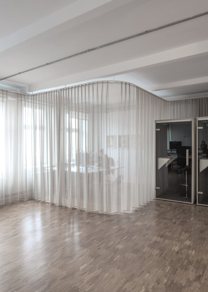 This project for Jester Consulting, a Berlin-based firm that challenges traditional industry norms, reimagines the typical office environment. A minimalist intervention shapes and divides the space through the interplay of custom objects and a flowing, semi-transparent curtain. This veil, a dynamic element, curves and bulges, creating a sense of openness punctuated by moments of privacy.