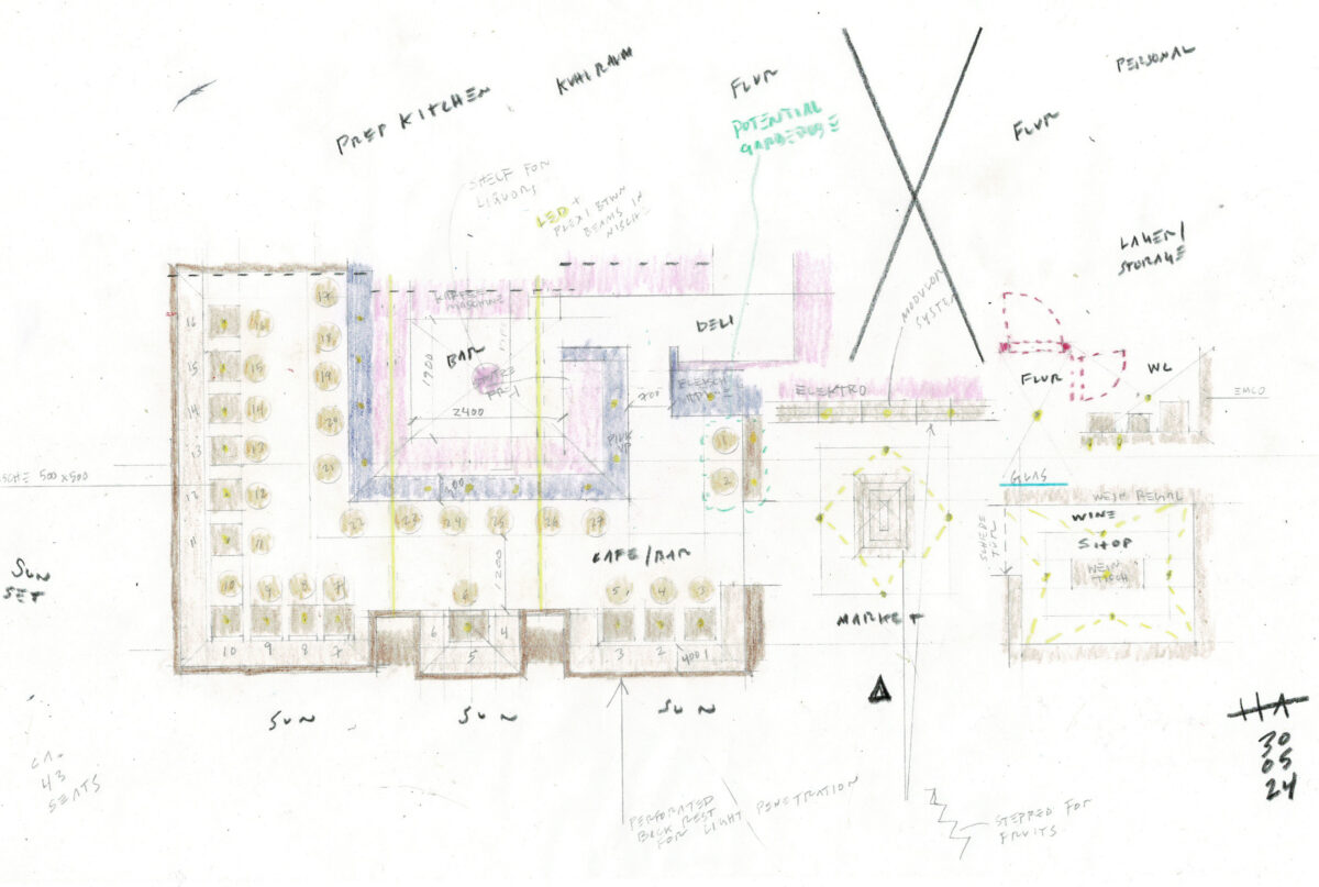 Located in a listed Plattenbau on Große Hamburger Straße, this project redefines the Italian market café, turning the ground floor into a contemporary hub for gastronomy and community. Designed for three owner-operators, it engages its urban context with clarity.