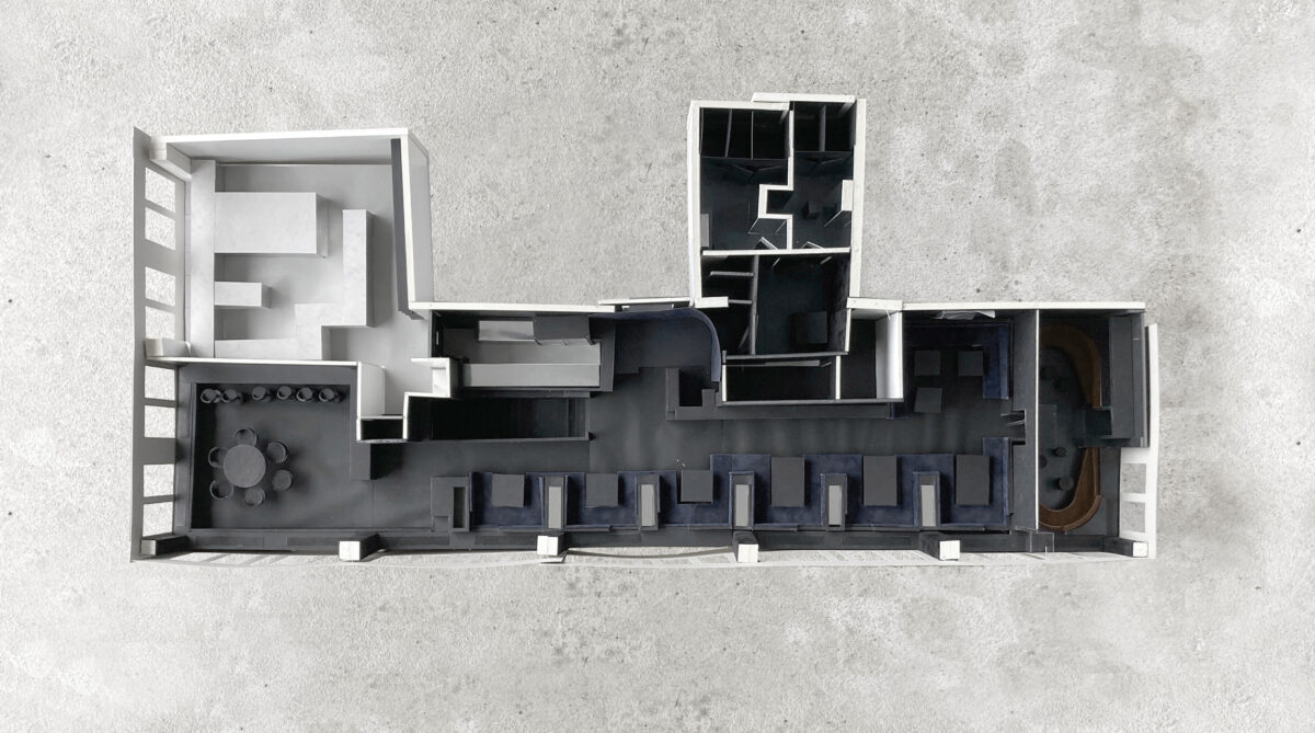 This architectural DNA is not merely a design element but a narrative thread that binds the two floors together. Unusual circumstances prevented our proposal from being realized.